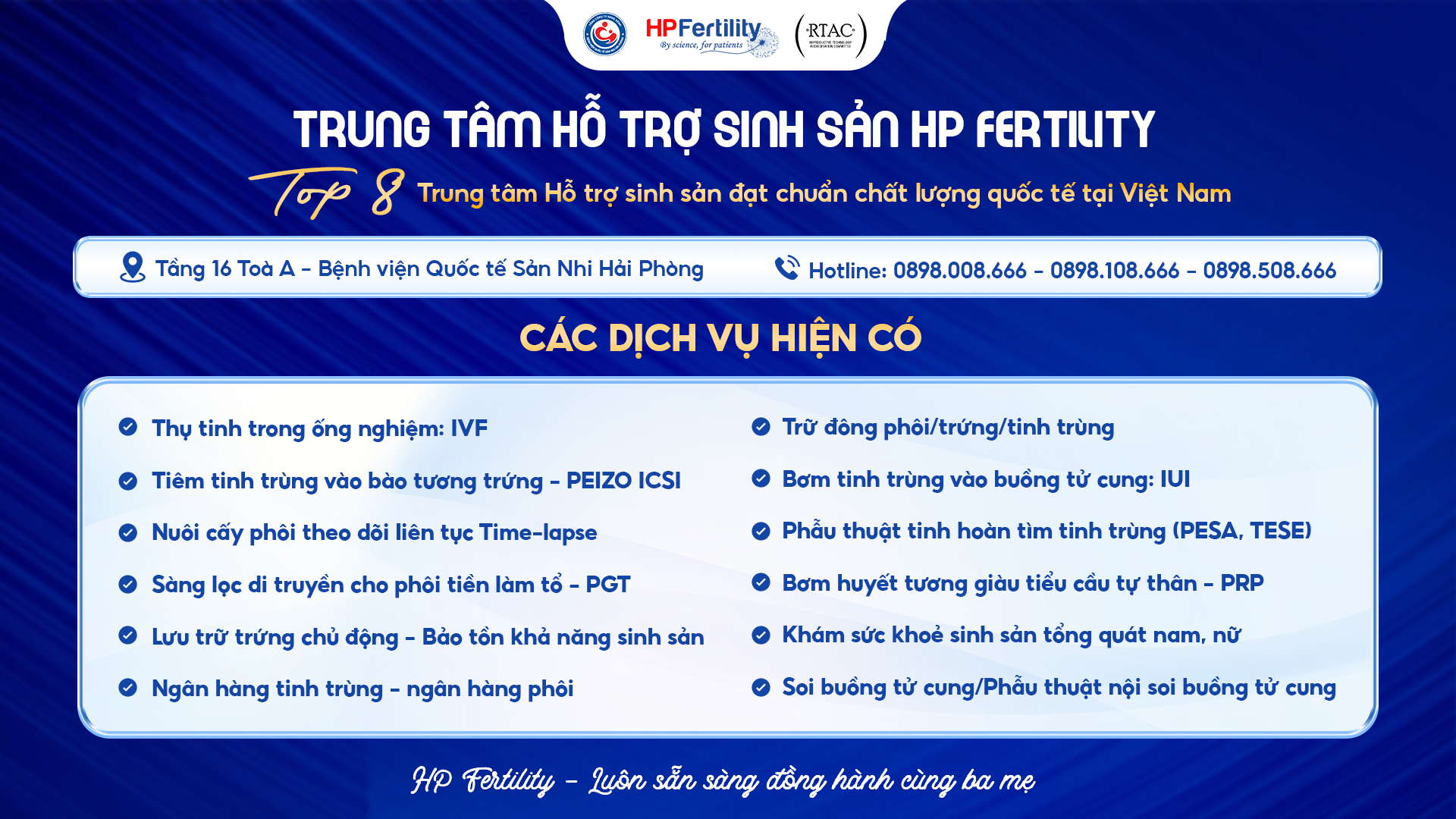 Hạnh phúc của gia đình là cả nhà đủ đầy, sum họp Hạnh phúc của ba mẹ là có con yêu bên cạnh, khỏe mạnh và phát triển đều Hạnh phúc của mỗi gia đình góp phần cho cộng đồng, xã hội hạnh phúc vững mạnh hơn. Hạnh phúc của HP Fertility là nhìn thấy nụ cười mãn nguyện của ba mẹ khi được ôm bé yêu vào lòng Chúc cho tất cả mọi người đều có hạnh phúc của riêng mình, cuộc sống thêm ý nghĩa.